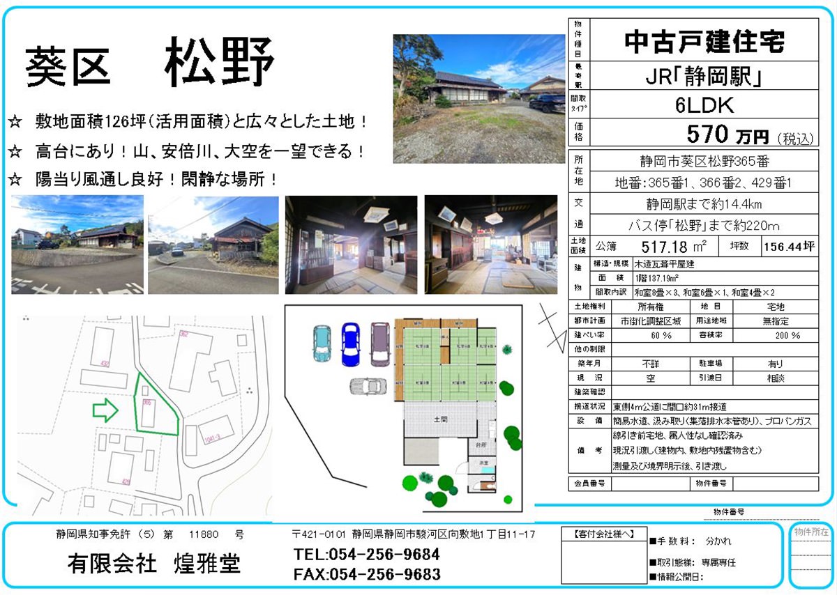 中古戸建葵区松野